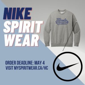 Shop Nike gear and more at myspiritwear.ca/hc. MySpiritWear only takes orders from HC students twice per year. Don’t miss your chance!